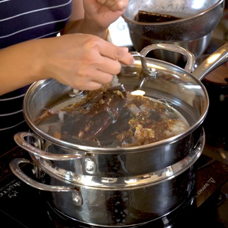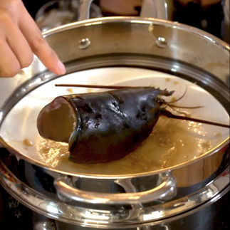 Steam the head on the same plate in the steamer for 5 minutes. Add julienned ginger and scallions to the lobsters. Then add the head to the plate.
