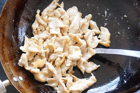1. Trim the fat off the chicken breast and cut it into 1/8-inch thin slices.